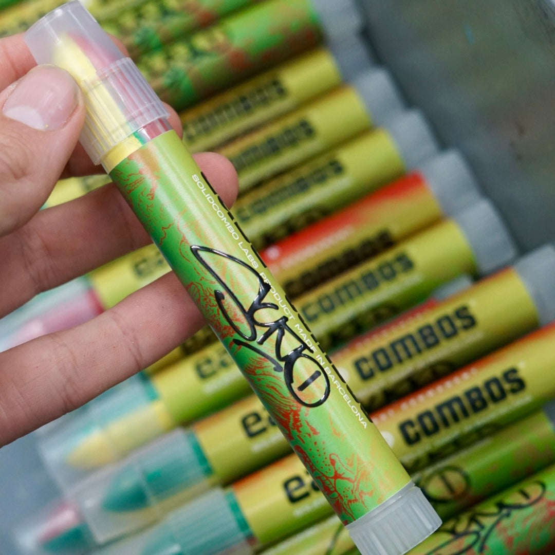 This pack includes 12 solid paint markers selected at random from our SOLIDOS, COMBOS and limited editions range. A larger mix built for exploration, experimentation, every pack is unique.